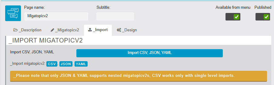 - CATEGORY e SUB CATEGORY non sono modificabili come lista per il momento, puoi comunque gestirne le traduzioni dal backoffice amministrativo sotto >> settings >> translations (potenzialmente quindi puoi mettere le categorie e sotto categorie che vuoi tramite questo sistema)