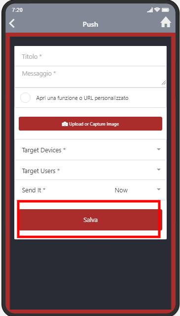 Se desideri impostare un messaggio di aggiornamento, dovrai creare due campagne distinte, una per Android e un’altra per iOS, con i diversi link a Google e Apple Store. Infine, seleziona la versione dell’app che desideri utilizzare come target. Ad esempio: se selezioni la versione 1.2, avrai come target tutte le versioni delle app precedenti alla 1.2.