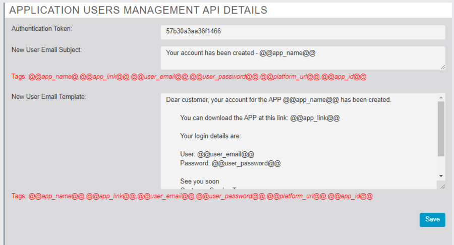 Dopo aver selezionato il tipo di APP compila tutti i campi obbligatori e carica la foto dell’icona dell’APP. Dopo aver completato l’inserimento troverai la tua APP nella lista APPS come da figura qui sotto. Potrai in ogni momento abilitare o disabilitare una APP inserita