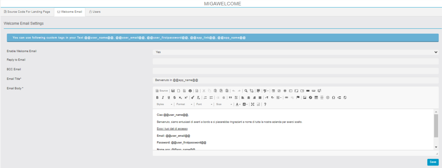 (oppure contatta il tuo supporto Migastone). Apparirà il pannello seguente: