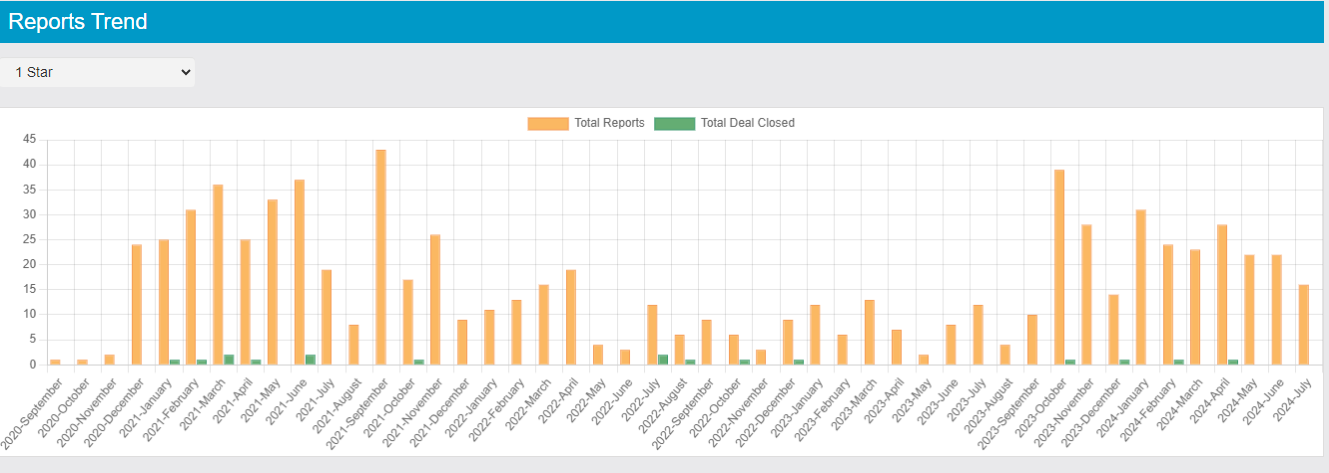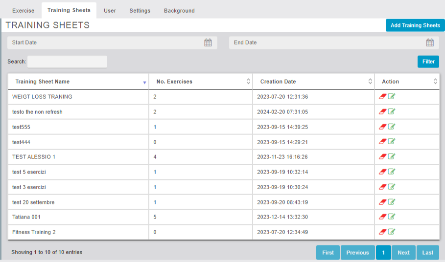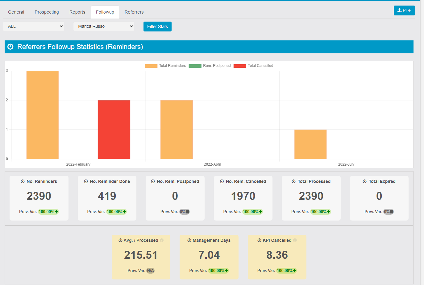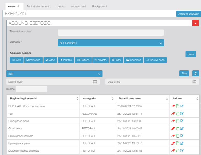NB: La visualizzazione dei dati è relativa all’intervallo di date selezionato tramite gli appositi campi in alto nella pagina: