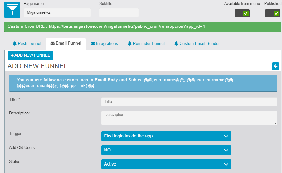MIGAFUNNELv2 – Automatic Push Notification and email funnel