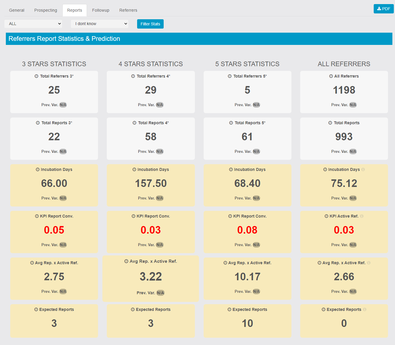 - 3-5 Stars KPI is TOTAL REFERRERS 3-4-5 STARS divided TOTAL REFERRERS If the value is less than 0.15 we show in RED the total