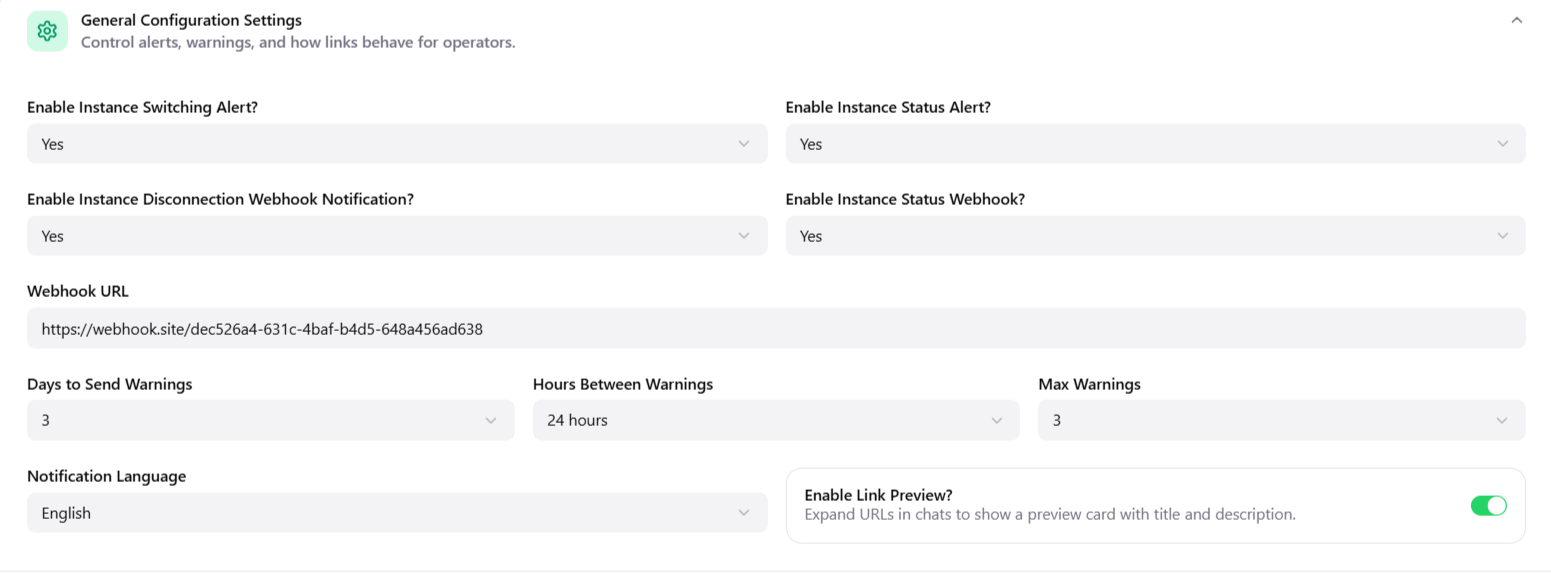 These settings make it possible to customize and optimize the use of Migasender and its integrations, improving the effectiveness of business communications.