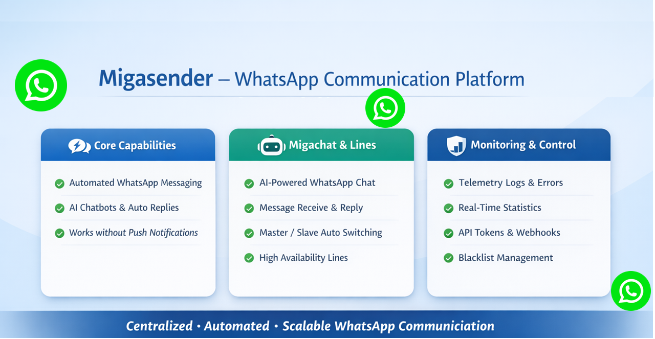 Migsender introduces a powerful new capability that allows WhatsApp messages to be dispatched directly from Siberian to all users with registered mobile numbers. This enhancement addresses a critical communication gap by enabling outreach to users who may not be reachable through traditional push notifications.